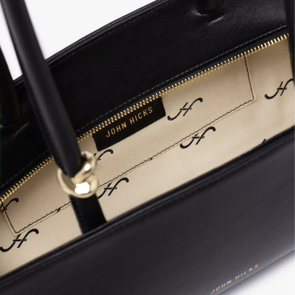 Diseñadas para un confort inigualable, las correas tubulares de hombro aseguran un porte cómodo. El acceso al interior se logra a través de un cierre metálico de suave deslizamiento, que lleva el icónico logo de JOHN HICKS, ofreciendo una experiencia de uso fluida que fusiona la practicidad con un toque de sofisticación en cada movimiento.