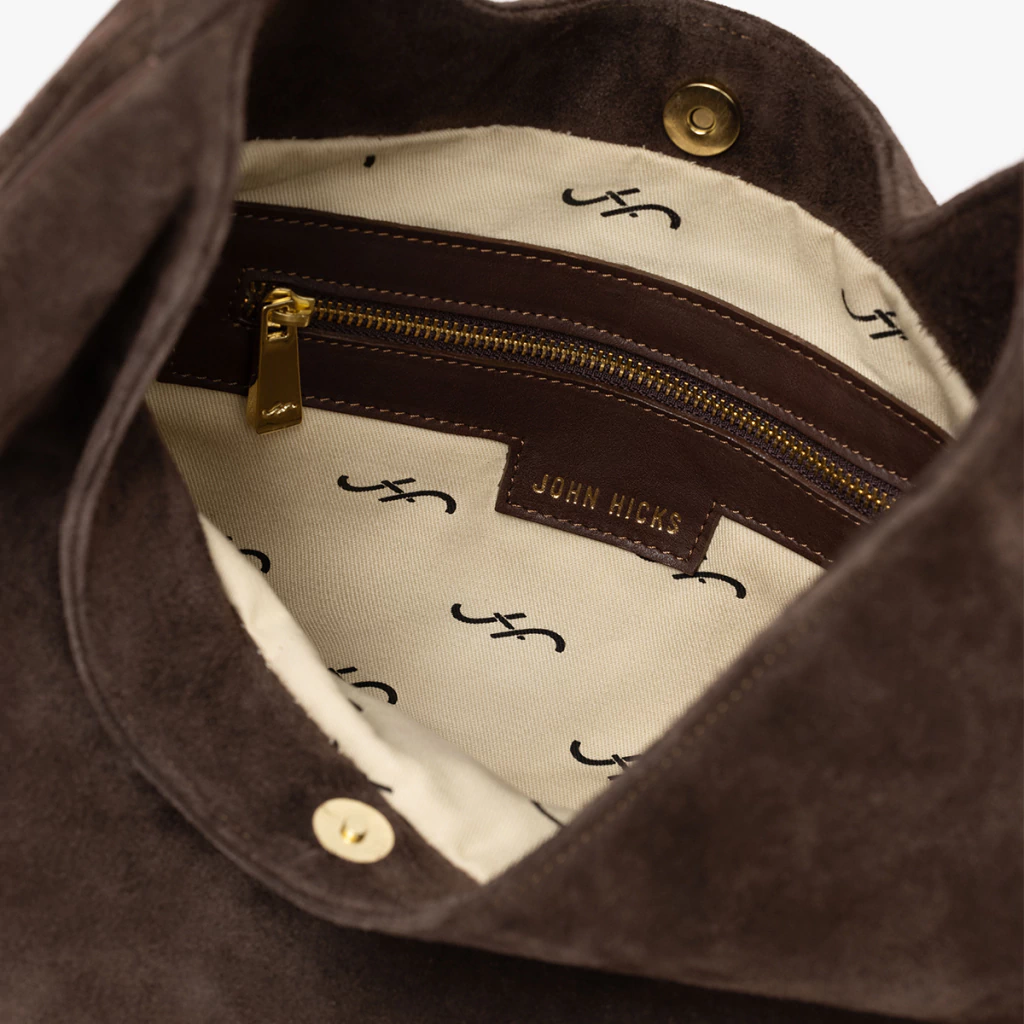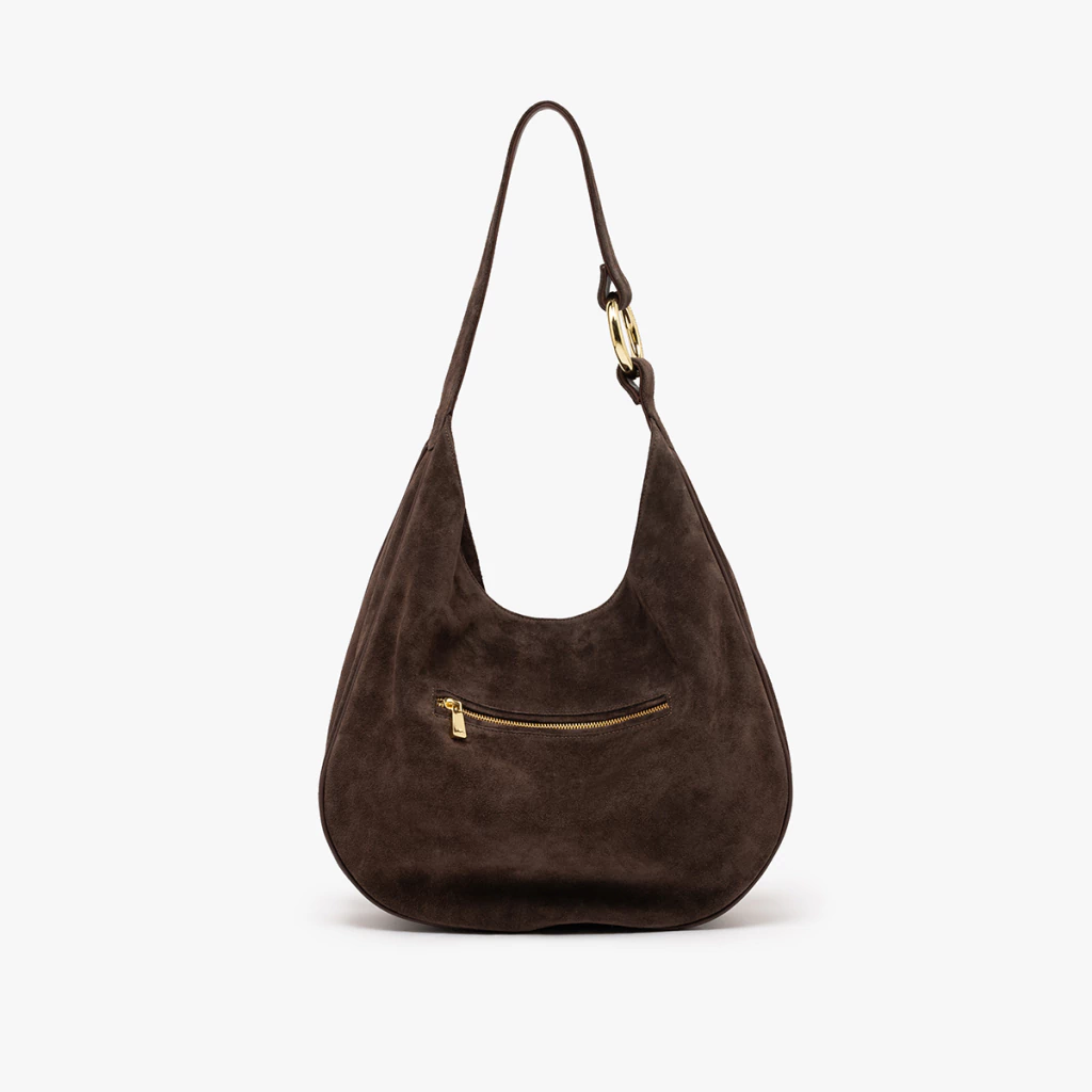 Confeccionada en exquisitos cueros vacunos soft, con acabado sedoso o gamuzado, se presenta en una paleta de tonos clásicos. Nuestro discreto iso en relieve en su frente añade un sello de calidad, mientras que su ancha correa de hombro se convierte en un statement gracias a su imponente argolla en baño oro.